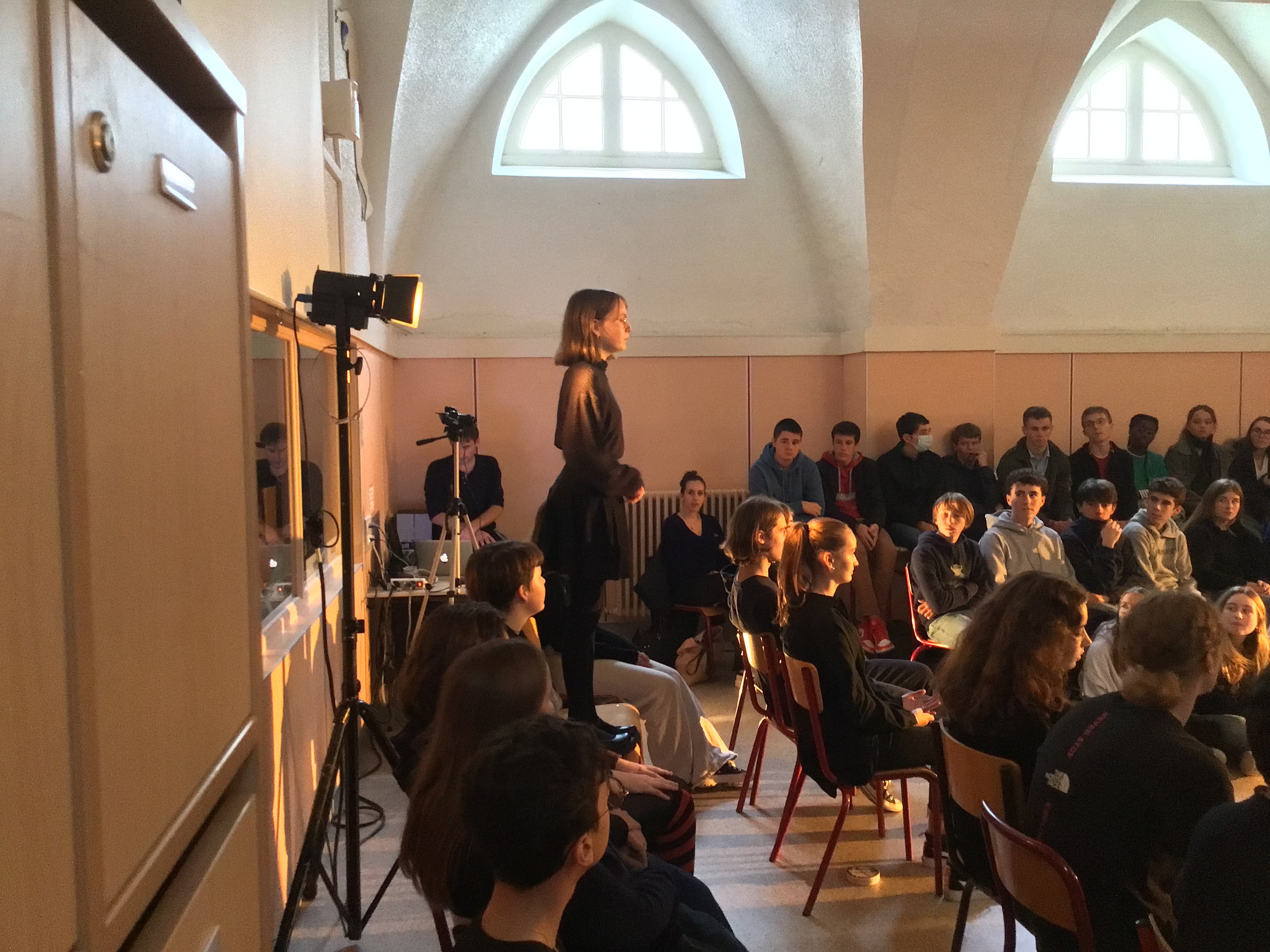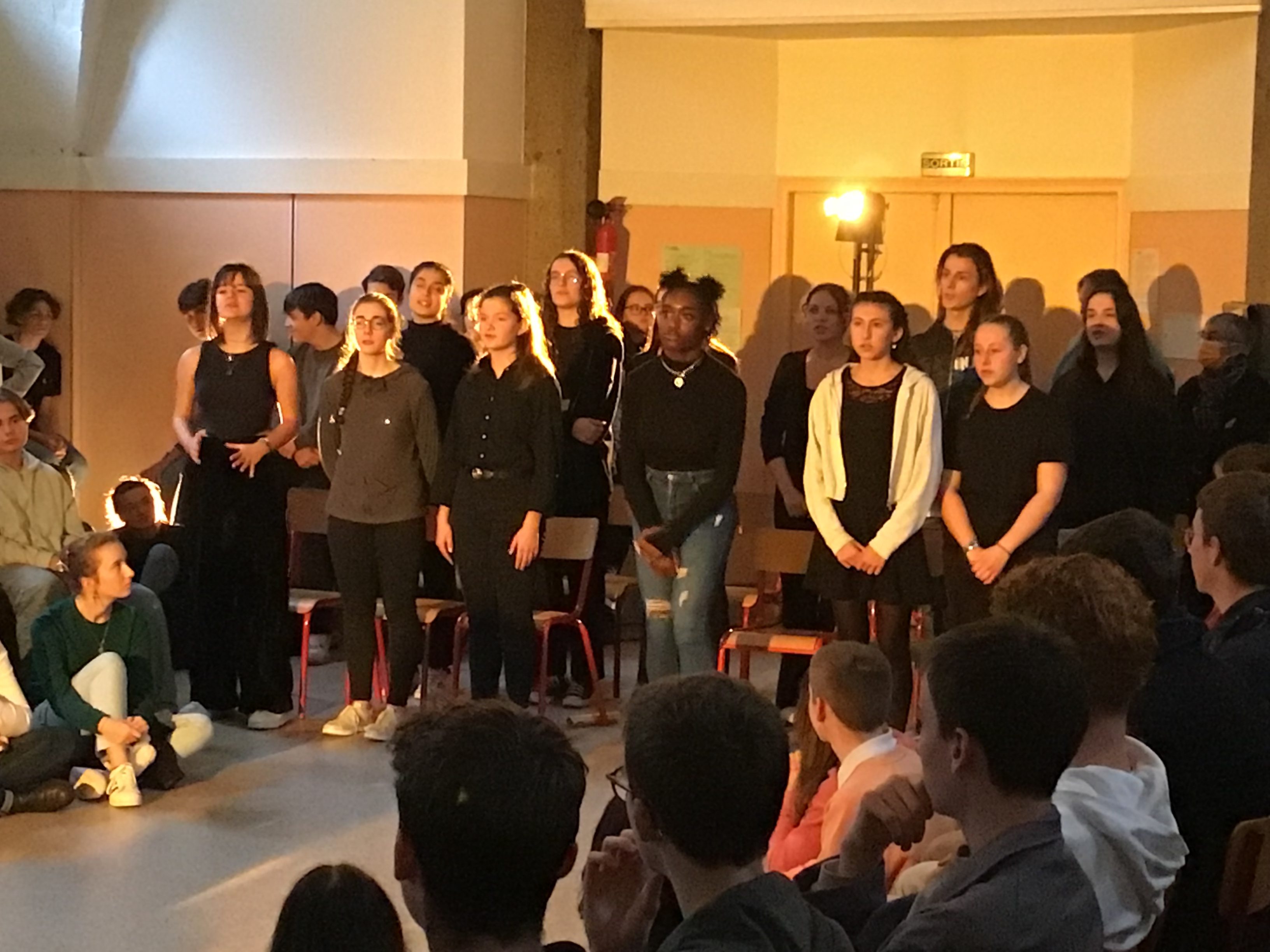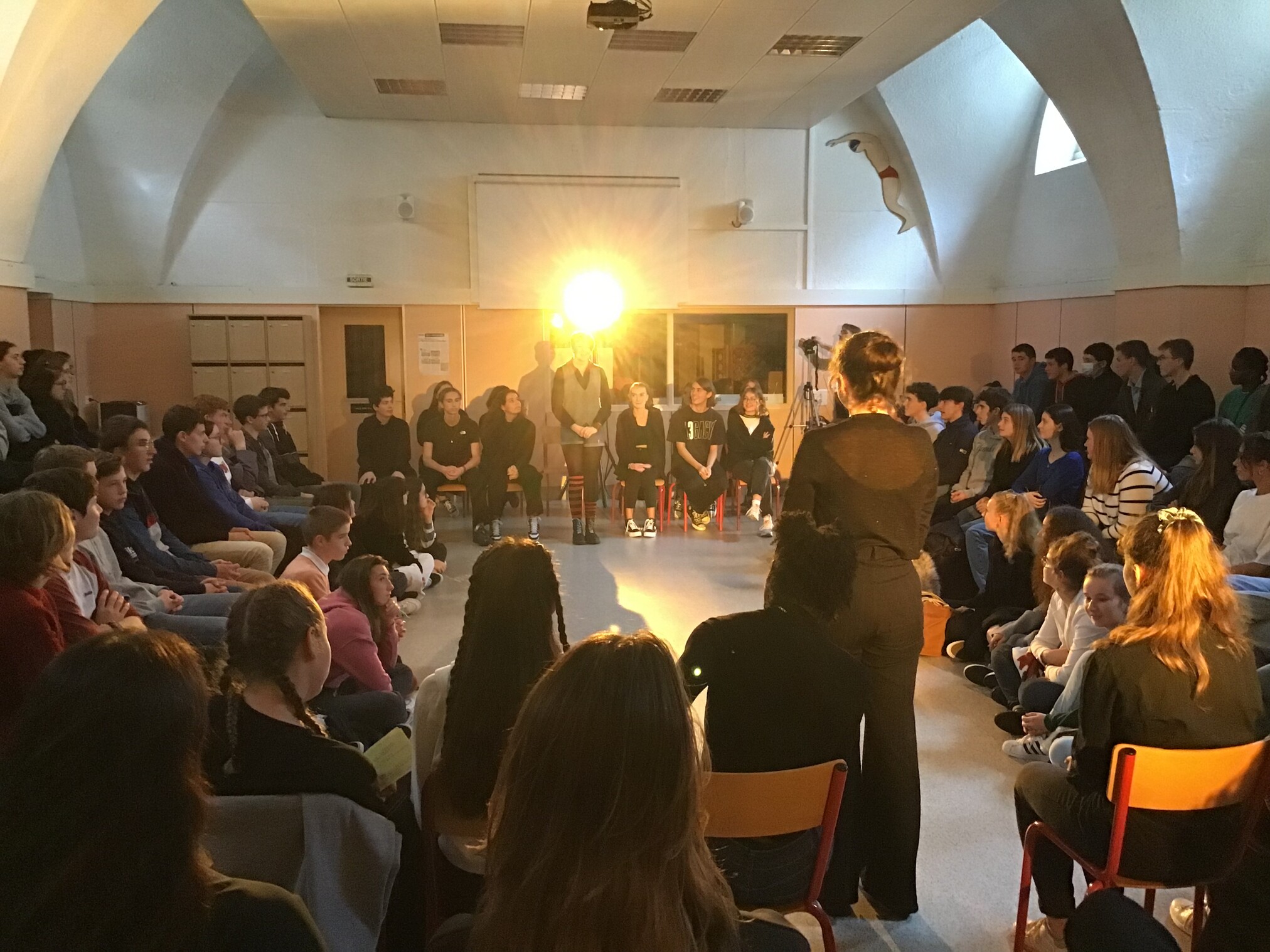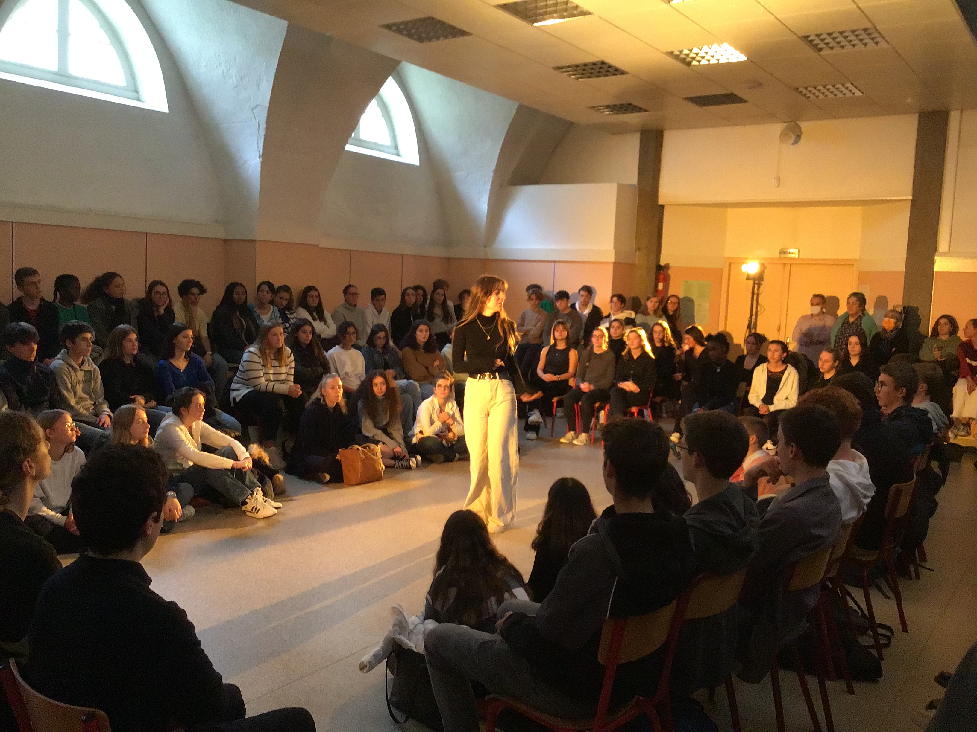 Vendredi 14 octobre, les 25 élèves de Première de la spécialité HLP ont fait une représentation devant un parterre d'élèves de Seconde. Celle-ci était l'aboutissement d'un atelier de quatre jours sur l'art du discours (enseignement pluridisciplinaire centré sur une dimension de la culture humaniste permettant de former un jugement réfléchi et un esprit critique).